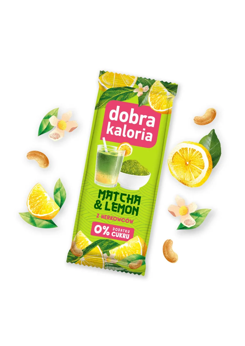 Matcha znów gra pierwsze skrzypce. Tym razem w pojedynczym batoniku, który pozwala zatrzymać się na chwilę tylko dla tego jednego smaku. Na początku baton był dostępny wyłącznie w formie minibatoników, ale szybko stał się bestsellerem. Dlatego zrobiliśmy go w wersji pełnowymiarowego batona. Matcha Lemon to połączenie zielonej herbaty z cytrynową świeżością. Delikatna, cytrusowa nuta spotyka się tu z naturalną słodyczą owoców, prowadząc do aromatycznego, lekko kwaskowego finiszu, który przyjemnie orzeźwia. W środku czekają chrupiące nerkowce i komosa ryżowa - tekstura, która kontrastuje z miękką bazą przez co, każdy kęs jest wyraźny, ale nadal lekki. Bez dodatku cukru, pełen wartości odżywczych. 151 kcal w jednym batoniku czyni go idealną, niskokaloryczną przekąską na moment wytchnienia.